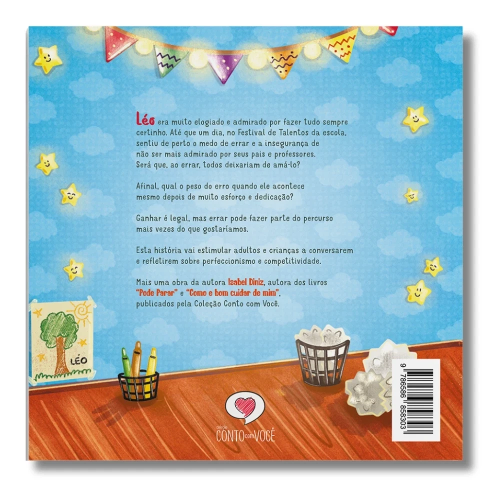 Léo era muito elogiado e admirado por fazer tudo sempre certinho. Até que um dia, no Festival de Talentos da escola, sentiu de perto o medo de errar e a insegurança de não ser mais admirado por seus pais e professores. Será que, ao errar, todos deixariam de amá-lo?