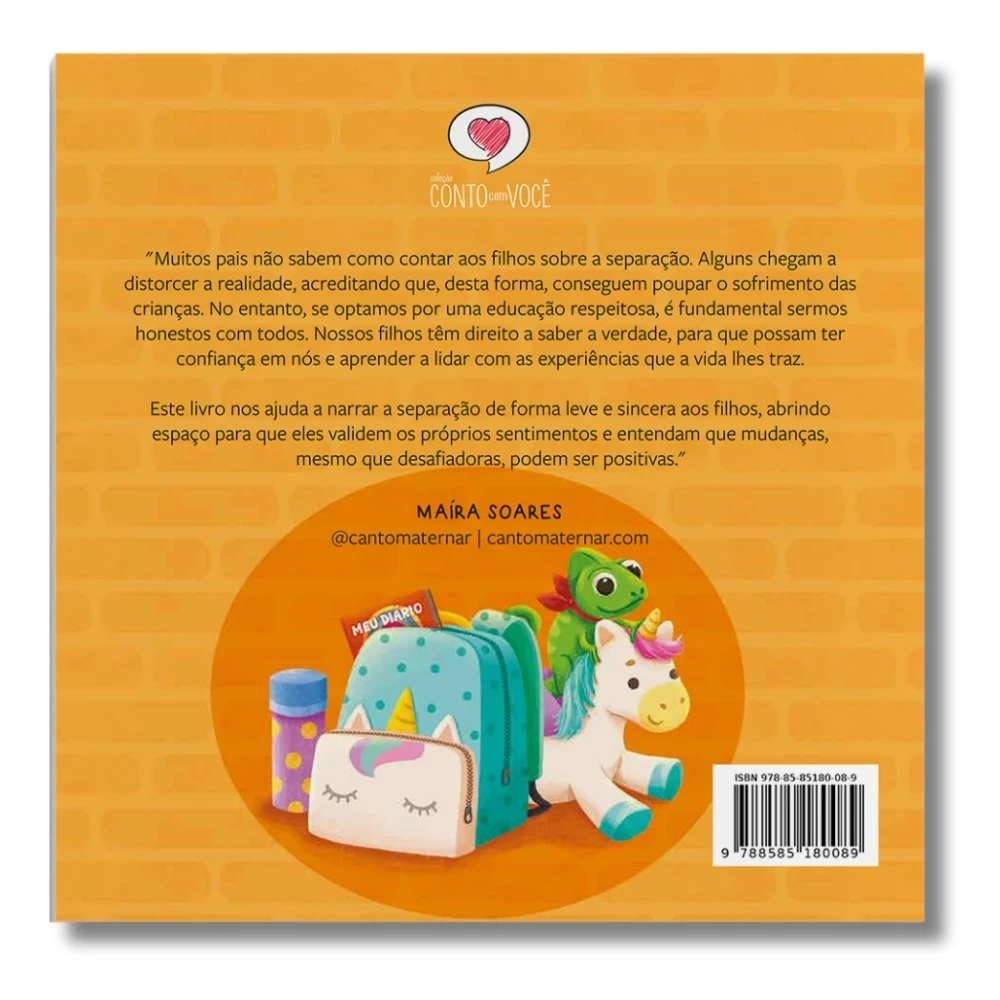 Momento sentimentalmente delicado para muitas famílias, que gera dúvidas e insegurança para a maioria das crianças. O livro narra, de forma lúdica, porque agora os pais decidiram morar em casas separadas e como a adaptação na rotina será benéfica para toda a família. Aborda sentimentos, questionamentos e explica guarda compartilhada.