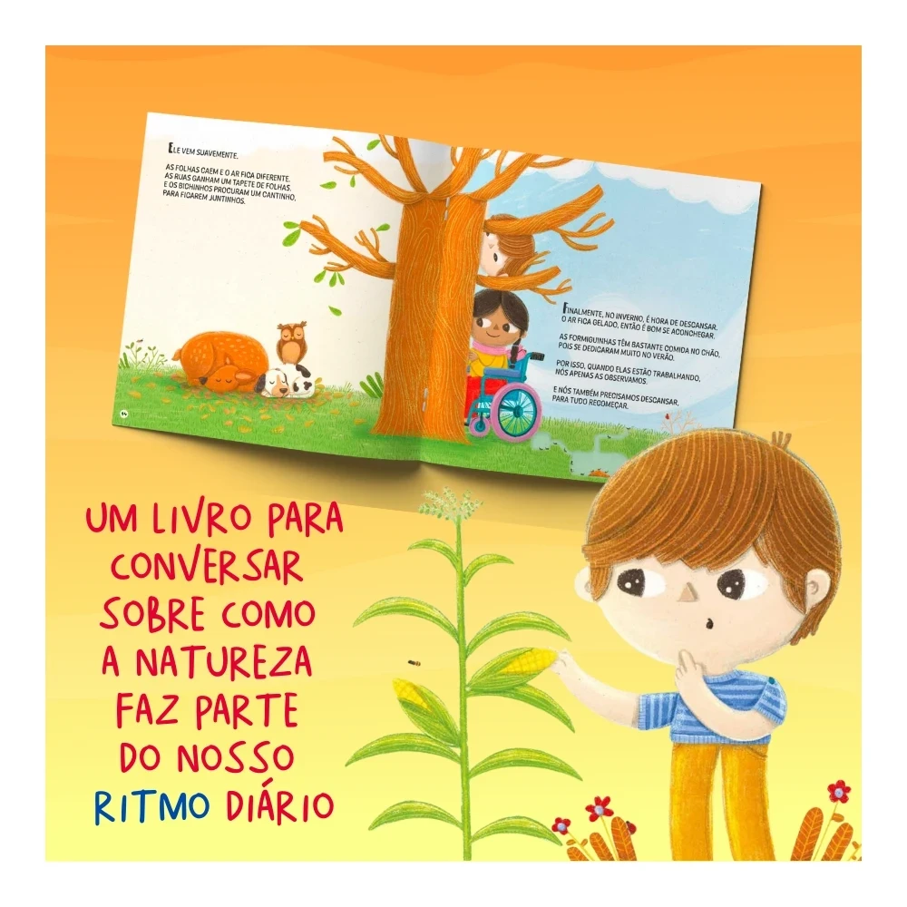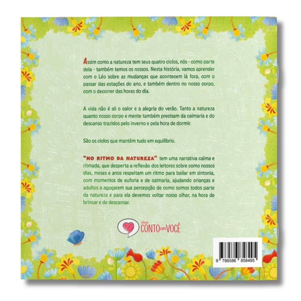 “No ritmo da natureza” tem uma narrativa calma e ritmada, que desperta a reflexão dos leitores sobre como nossos dias, meses e anos respeitam um ritmo para bailar em sintonia, com momentos de euforia e de calmaria, ajudando crianças e adultos a aguçarem sua percepção de como somos todos parte da natureza e para ela devemos voltar nosso olhar, na hora de brincar e de descansar.