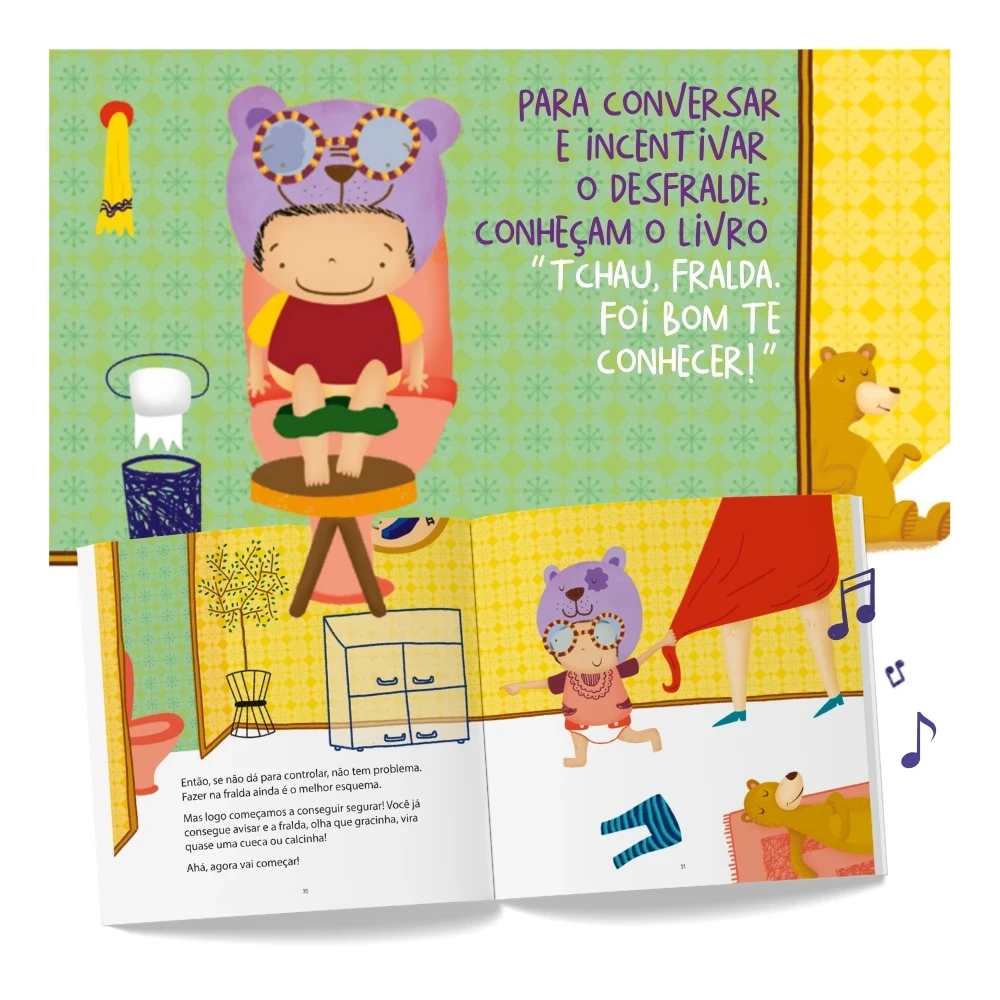 Você sabia que o desfralde não depende da força de vontade da criança? “Tchau, fralda. Foi bom te conhecer!” é o primeiro livro do Brasil que promove e apoia o Desfralde Consciente, contemplado por quatro diferentes fases que devem ser conduzidas pela própria criança, cada uma a seu tempo.